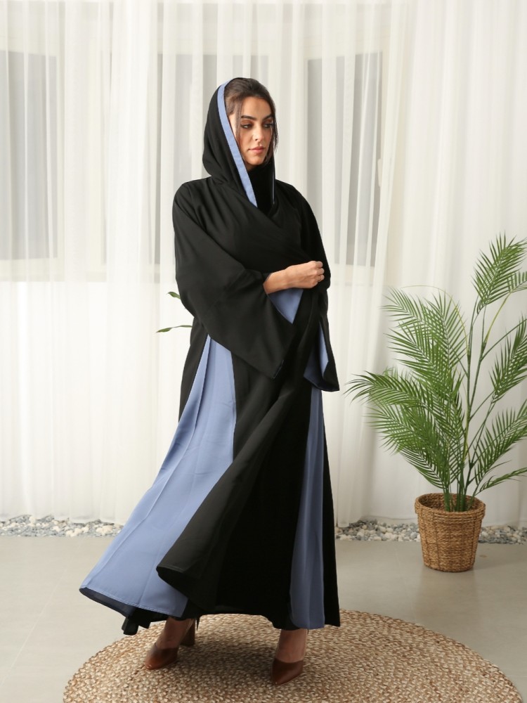 - البليزر لونه اسود انيق مضاف إليه من الجمب و الاكمام لون أزرق سماوى يعطى لمسه مميزه و جذابه له